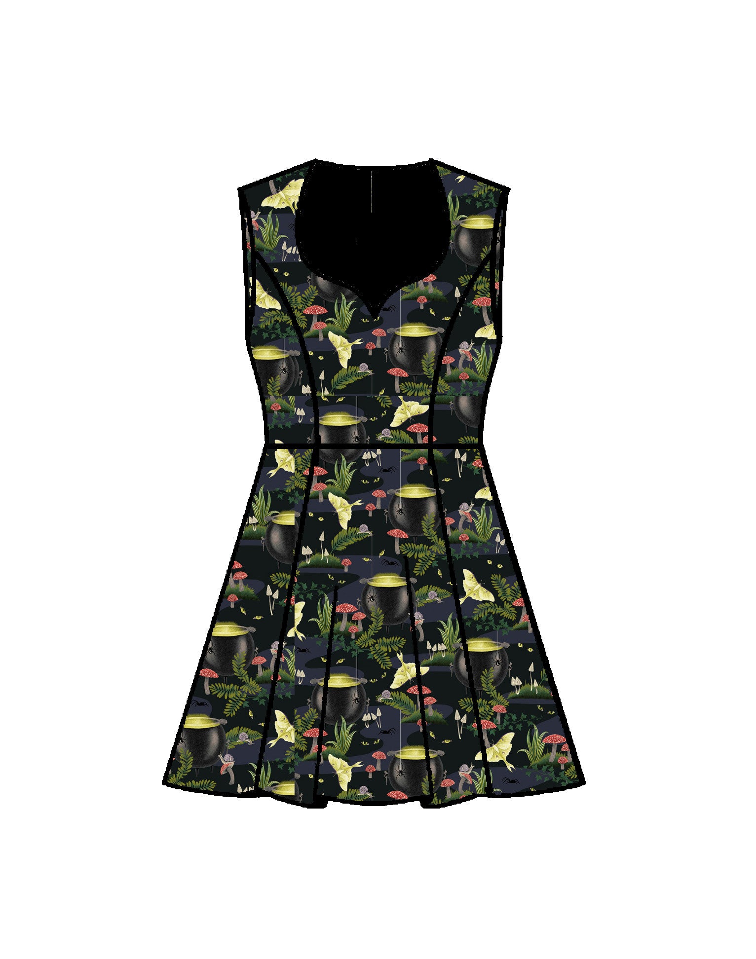 • Load image into Gallery viewer, Caroline Mini Dress in Bog Witch Print