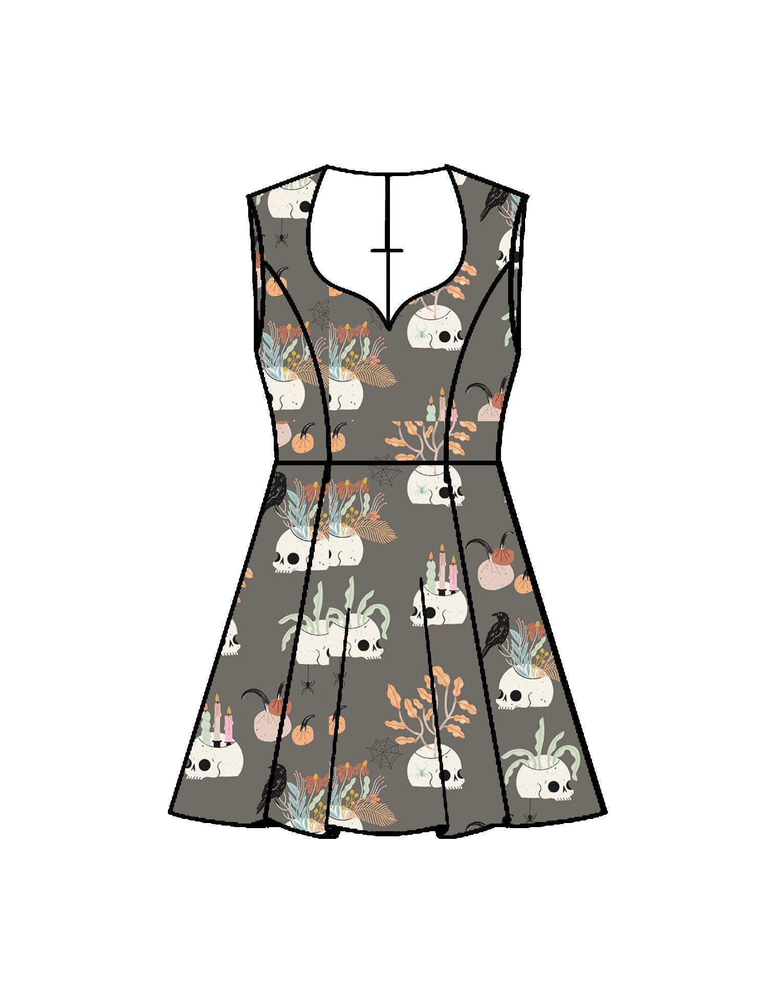 • Load image into Gallery viewer, Caroline Mini Dress in Skull Plant Daddy